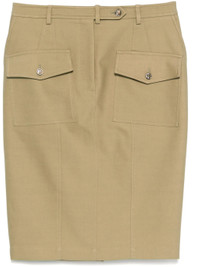 - khaki - concealed fly and button fastening - two front flap pockets - two rear jetted pockets - belt loops Materials & Product Care Lining: Cotton 100% Outer: Cotton 97%, Elastane 3% Size & Fit - Made from a midweight stretch fabric, this piece offers elasticity and flexibility when worn - The vented hem offers movement at the rear - This midi-length skirt is intended to be worn just below the waist - The model is 1.80 m wearing size 40.