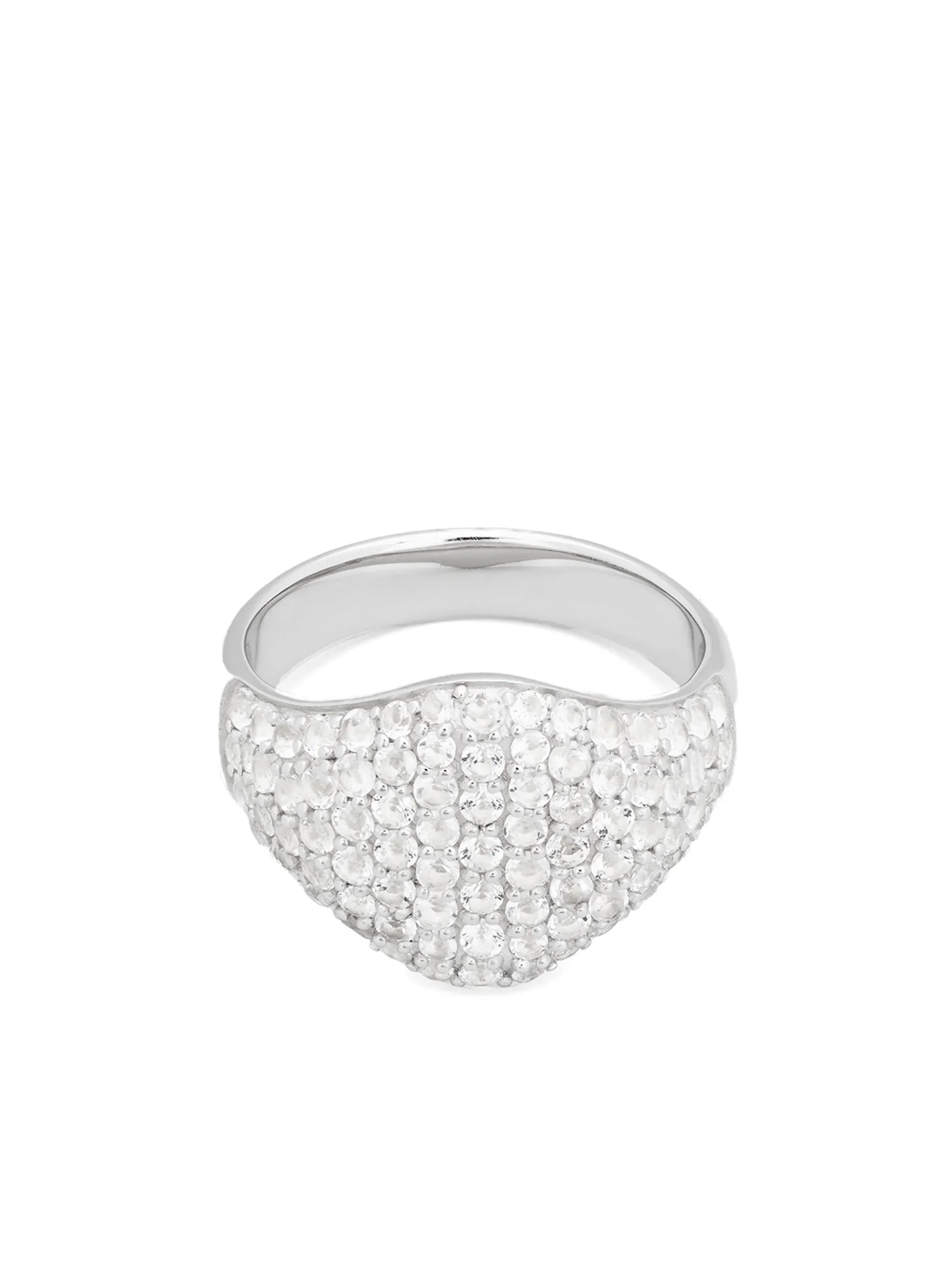 - silver-tone - rhodium plating - sterling silver - oval design - signet band - crystal embellishment Materials & Product Care White Rhodium Plated Sterling Silver 100%