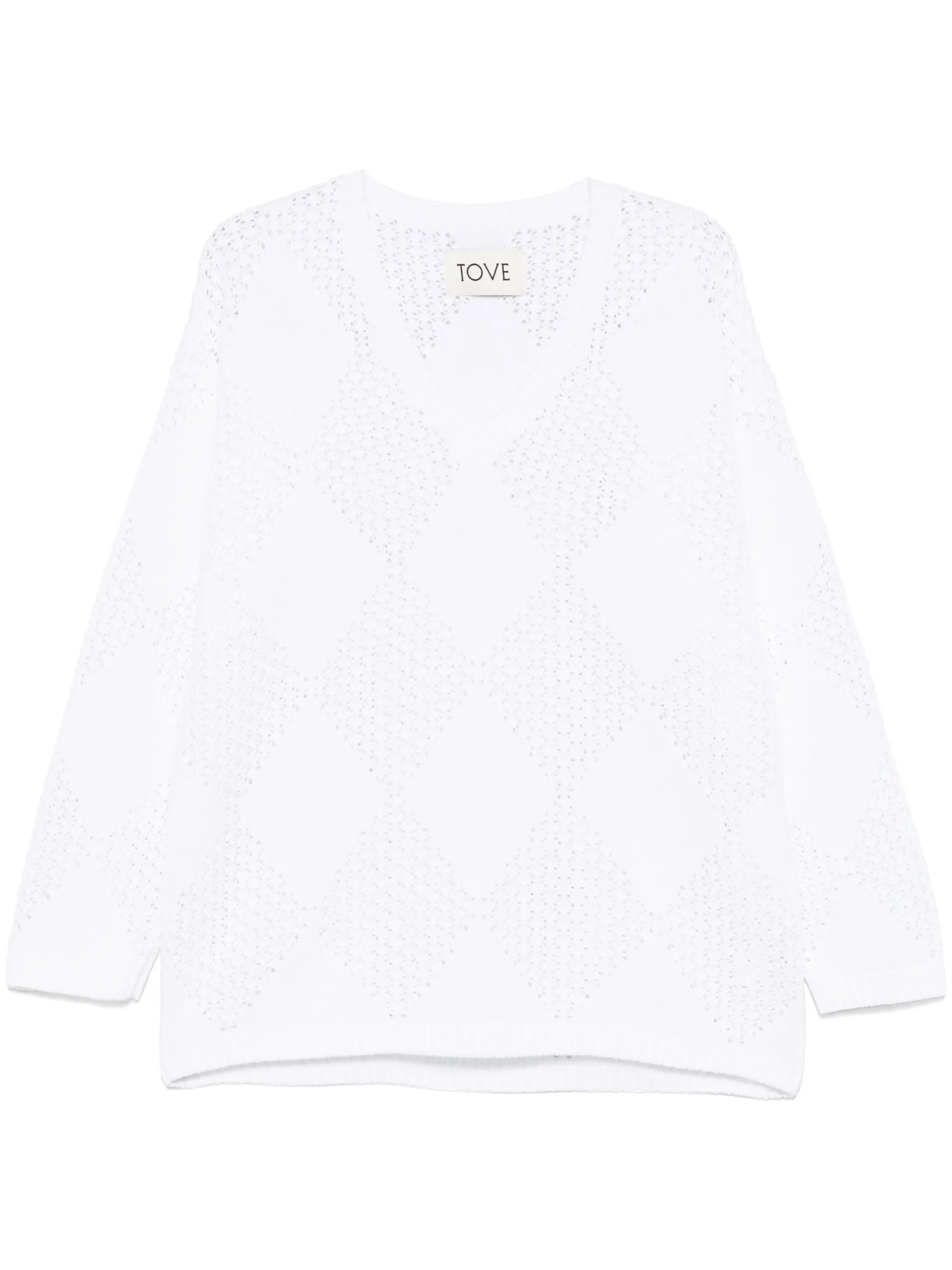 - white - ribbed cuffs and hem - diamond pattern - drop shoulder Materials & Product Care Cotton 100% Size & Fit - Designed to be unstructured, offering a loose fit throughout - Made with a midweight knit, this piece offers some stretch - The model is 1.80 m wearing size S.
