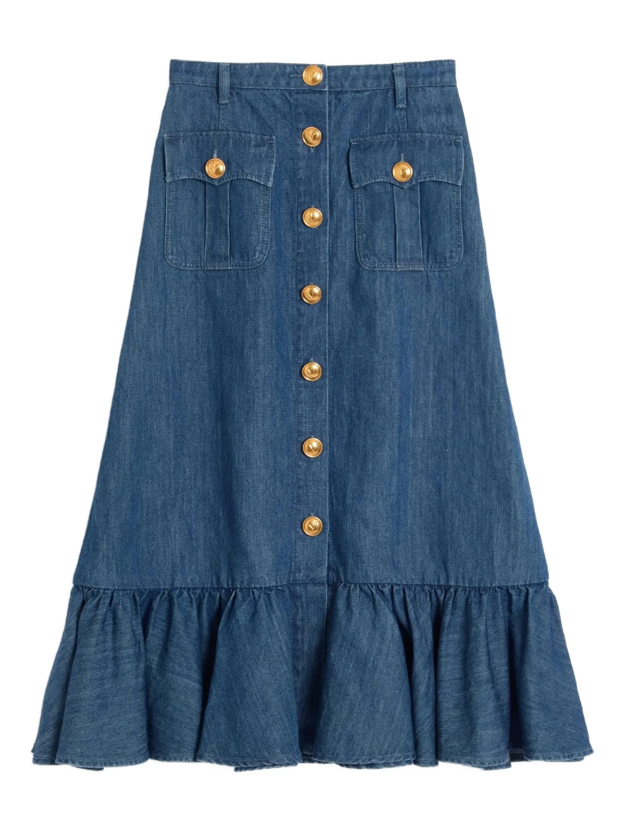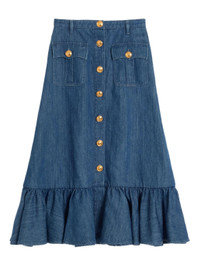 - indigo blue - front button fastening - two side flap pockets - belt loops - logo-embossed buttons Materials & Product Care Cotton 100%