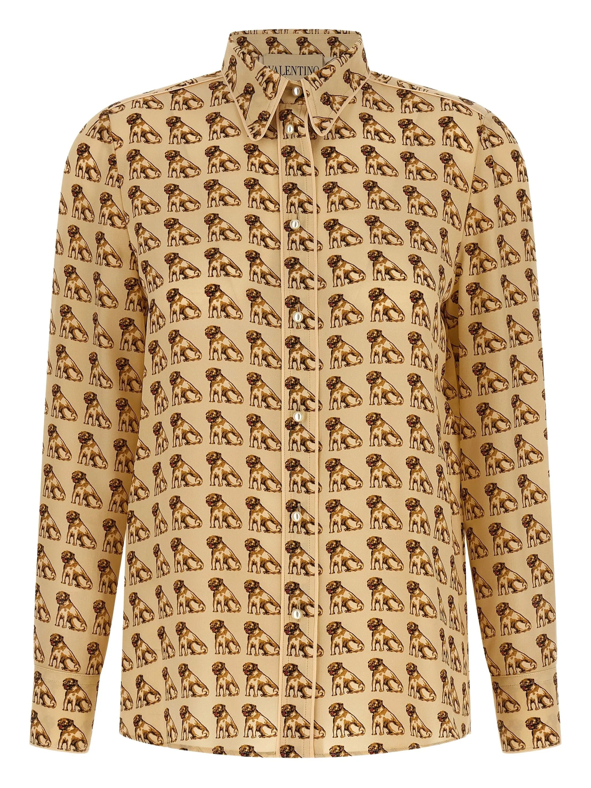 - Valentino Ready To Wear - beige - all-over Petit Charles print - collared neckline - button front fastening - long sleeves - buttoned cuffs Materials & Product Care Silk 100%