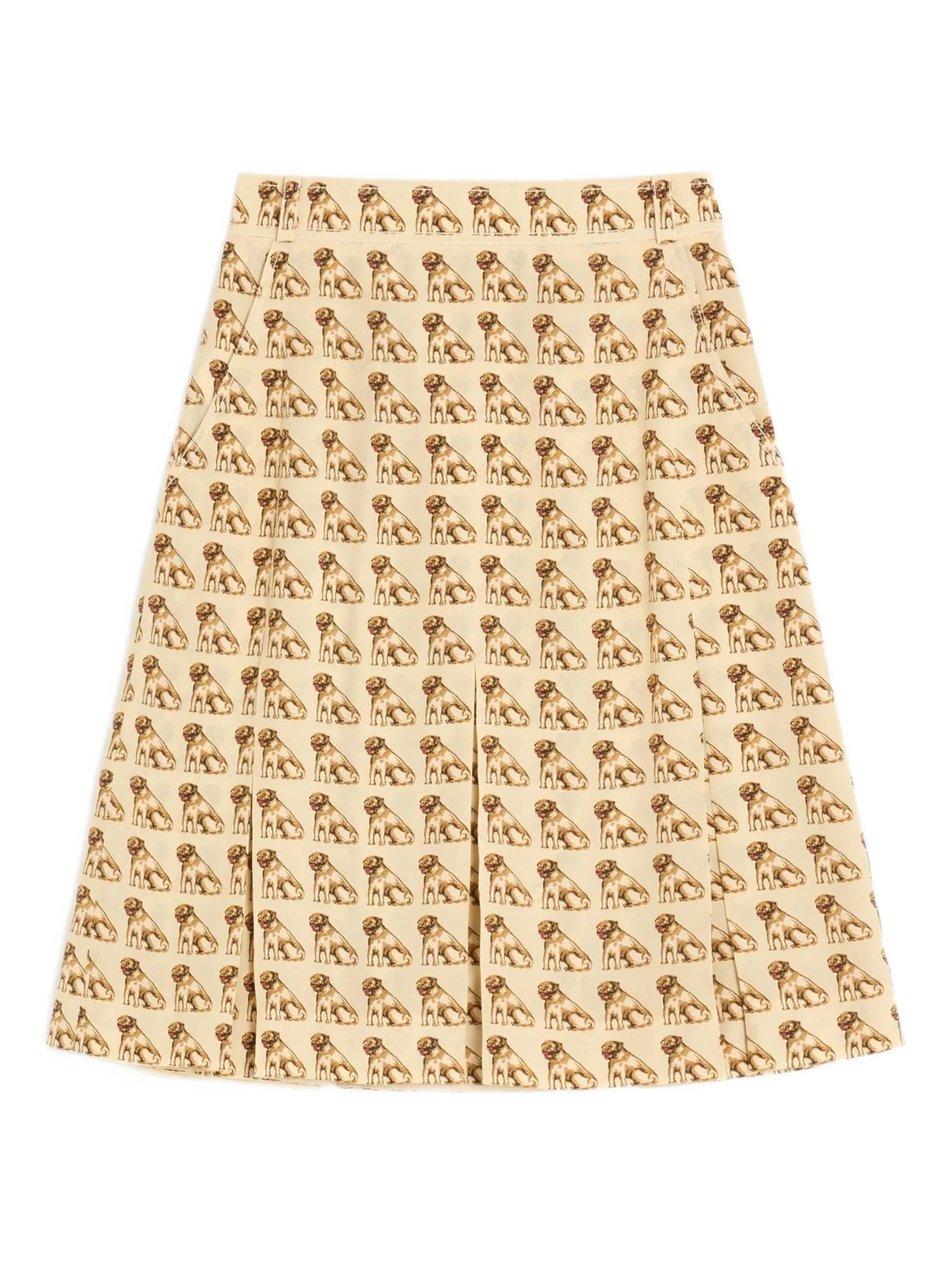 - Valentino Ready To Wear - beige - dog print - pleated - side zip fastening - A-line shape Materials & Product Care Silk 100%