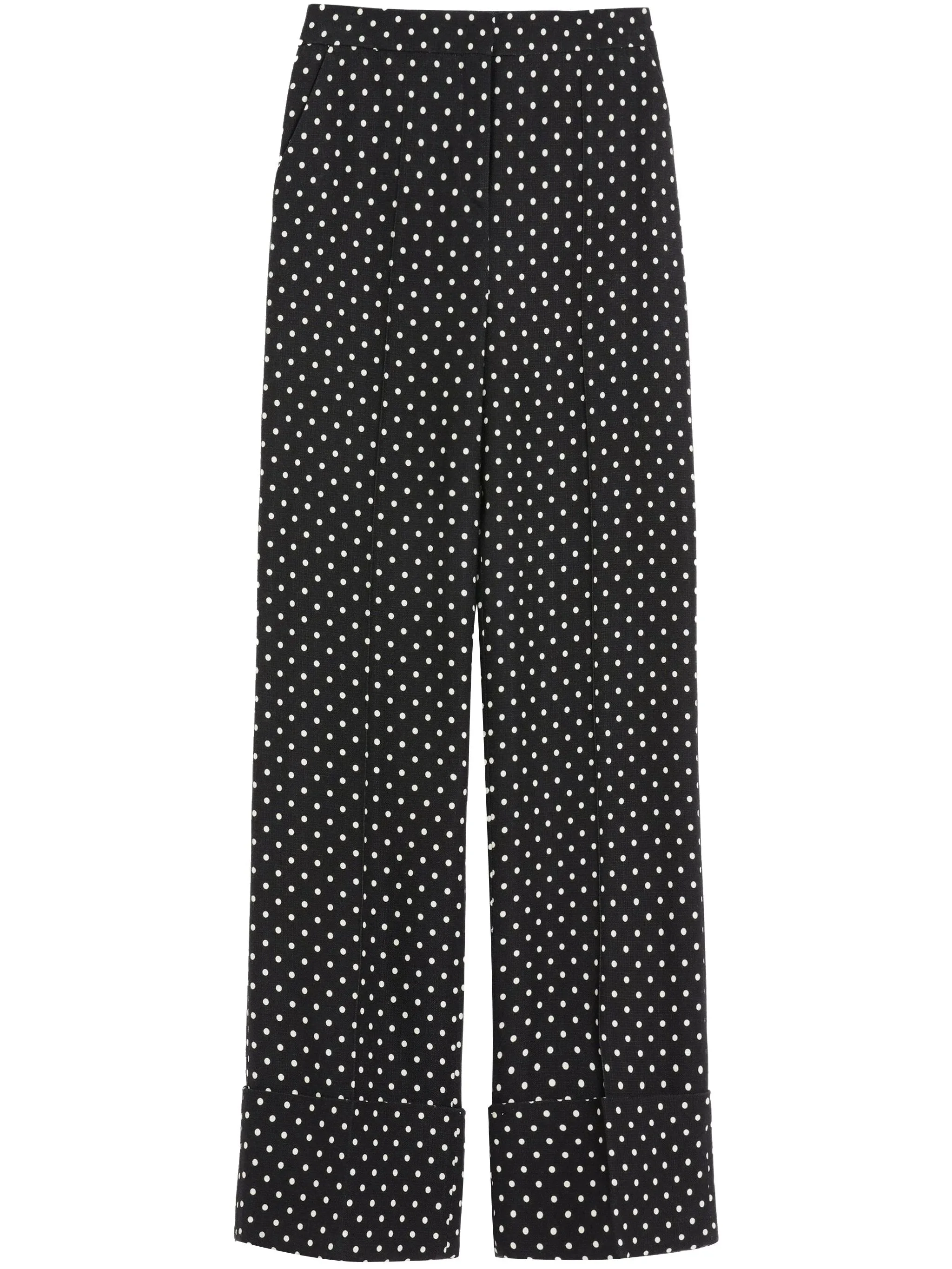 - black - concealed front fastening - belt loops - two side slash pockets - polka dot print Materials & Product Care viscose 100%
