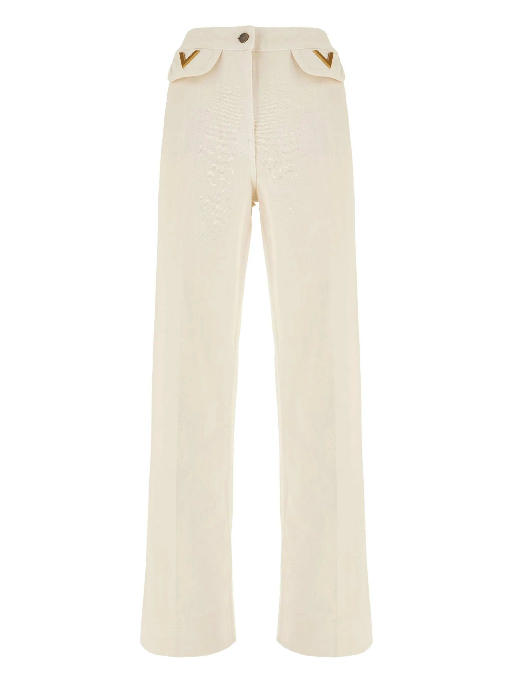 - Valentino Ready To Wear - ivory - V-logo detail - flap pocket detail - button fly - rear logo patch Materials & Product Care Cotton 100%, Polyester 100%