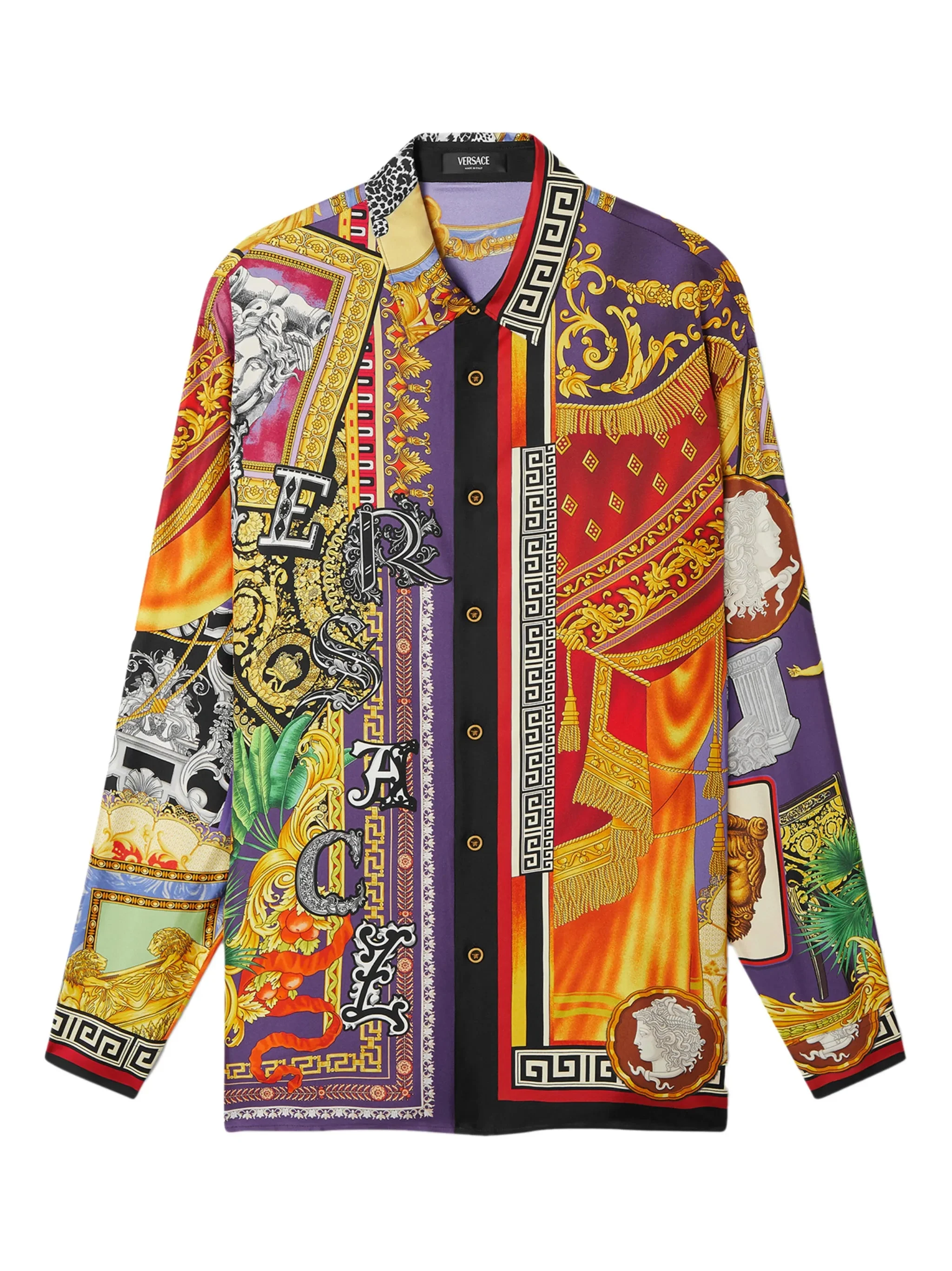 - purple, red and multicolor - button fastening - long sleeves - buttoned cuffs - classic collar Materials & Product Care Silk 100%