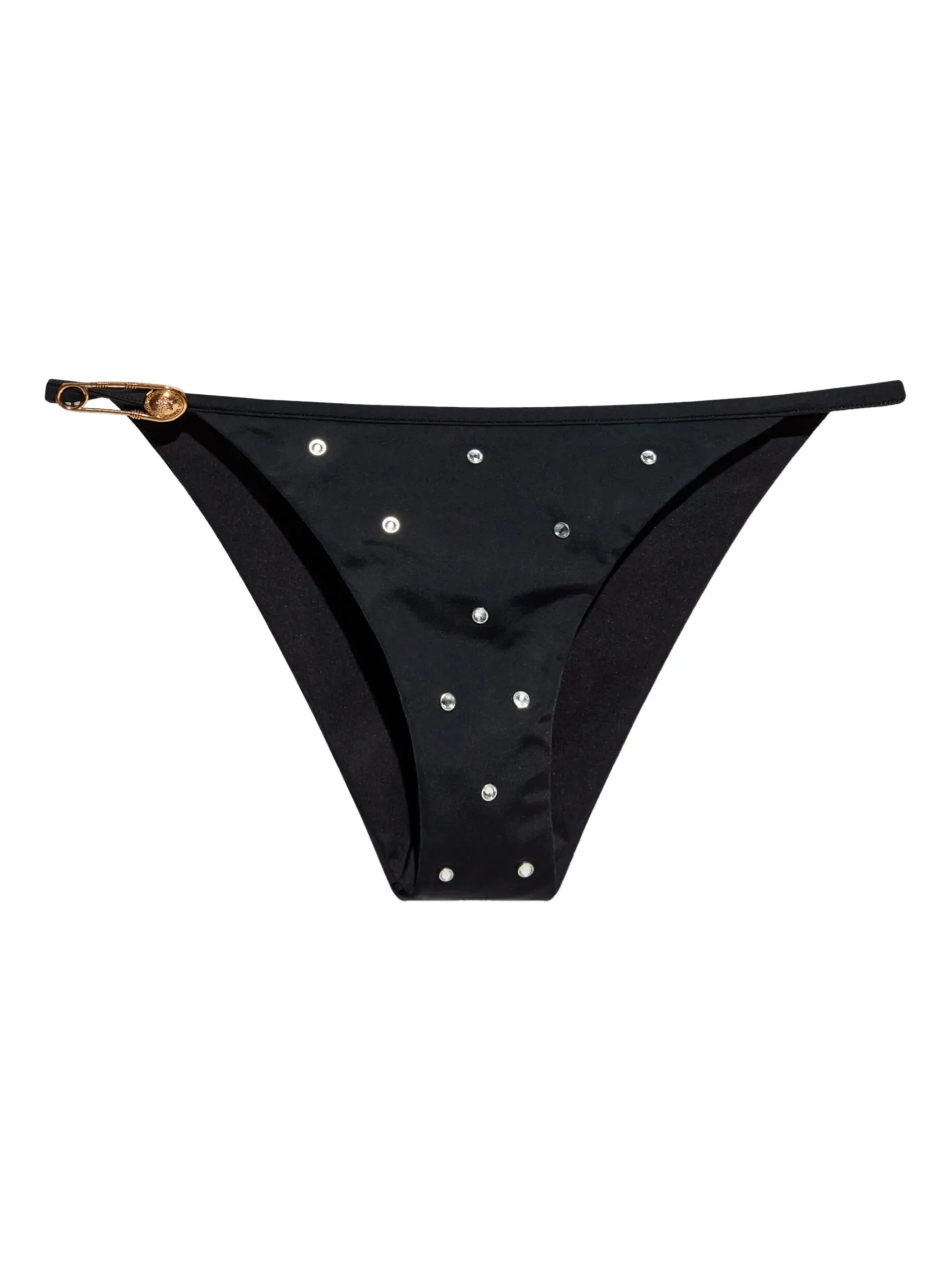 - black - thong strap - signature Medusa Safety Pin detail - crystal embellishment - Be mindful to try on swimwear over your own garments. Materials & Product Care Nylon 100%