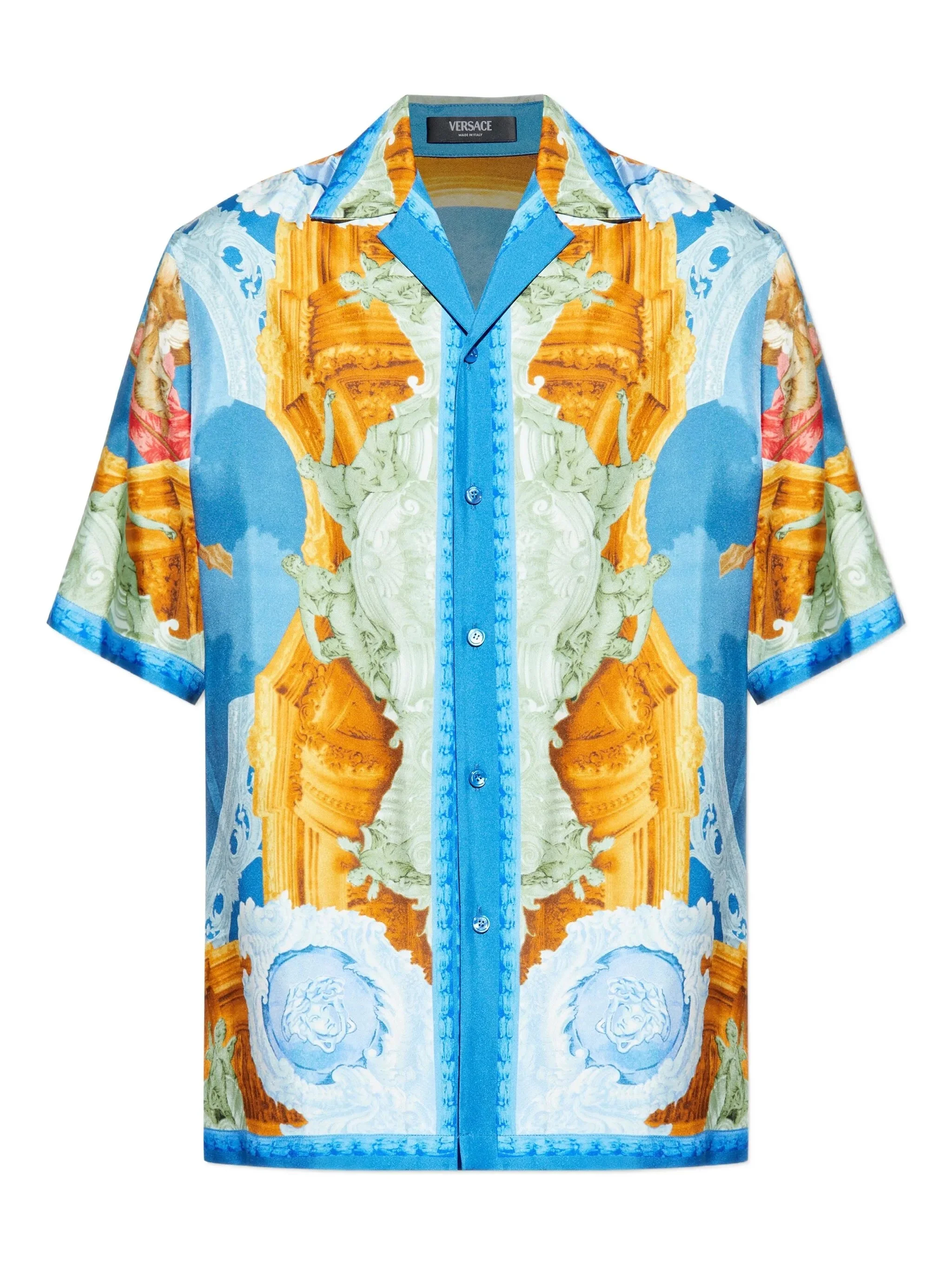 - light blue/multicolour - silk - Gallery print - short sleeves - button fastening - camp collar - straight hem Materials & Product Care Outer: Silk 100%