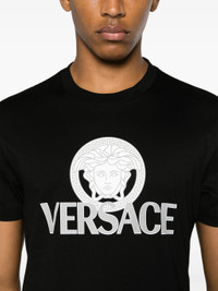 - black - cotton - jersey texture - Medusa Head motif - logo print to the front - crew neck - short sleeves - straight hem Materials & Product Care Cotton 100% Size & Fit - The model is 1.85 m wearing size M.