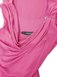 - bright pink - signature Medusa Safety Pin detail - cowl neckline - twisted front detail - gathered embellishments - floor-length design Materials & Product Care Lining: Elastane 5%, viscose 95% Outer: Elastane 5%, viscose 95%