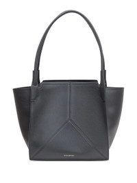 - black - leather - v-shaped panel detail - top handles - stitch detailing Materials & Product Care Outer: Leather 100%