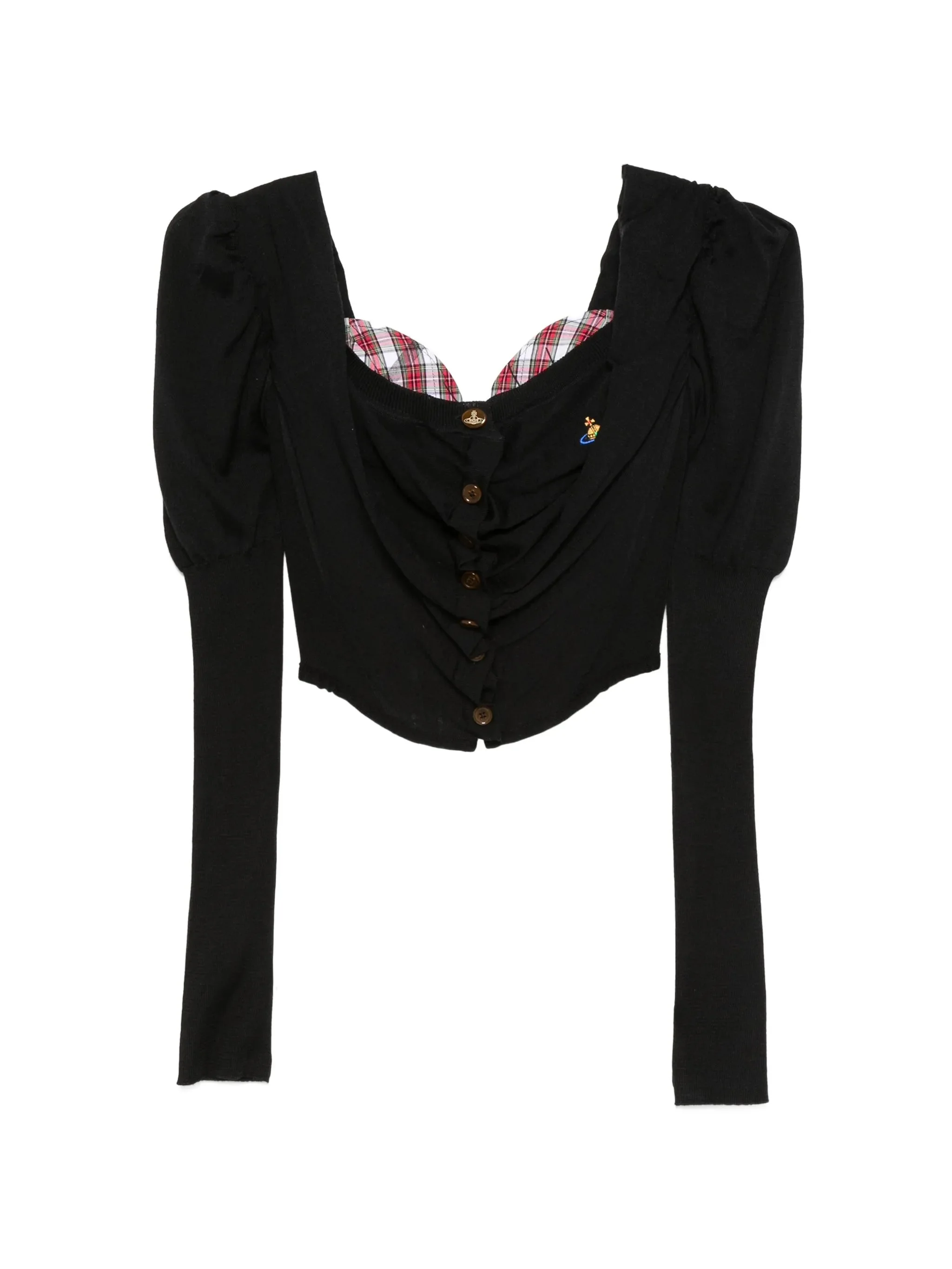 - black - button fastening - long sleeves - ruched detail - orb logo - square neck Materials & Product Care Cotton 100%, Elastane 23%, Polyamide 77%, Silk 30%, Virgin Wool 70% Size & Fit - The model is 1.76 m wearing size 42.