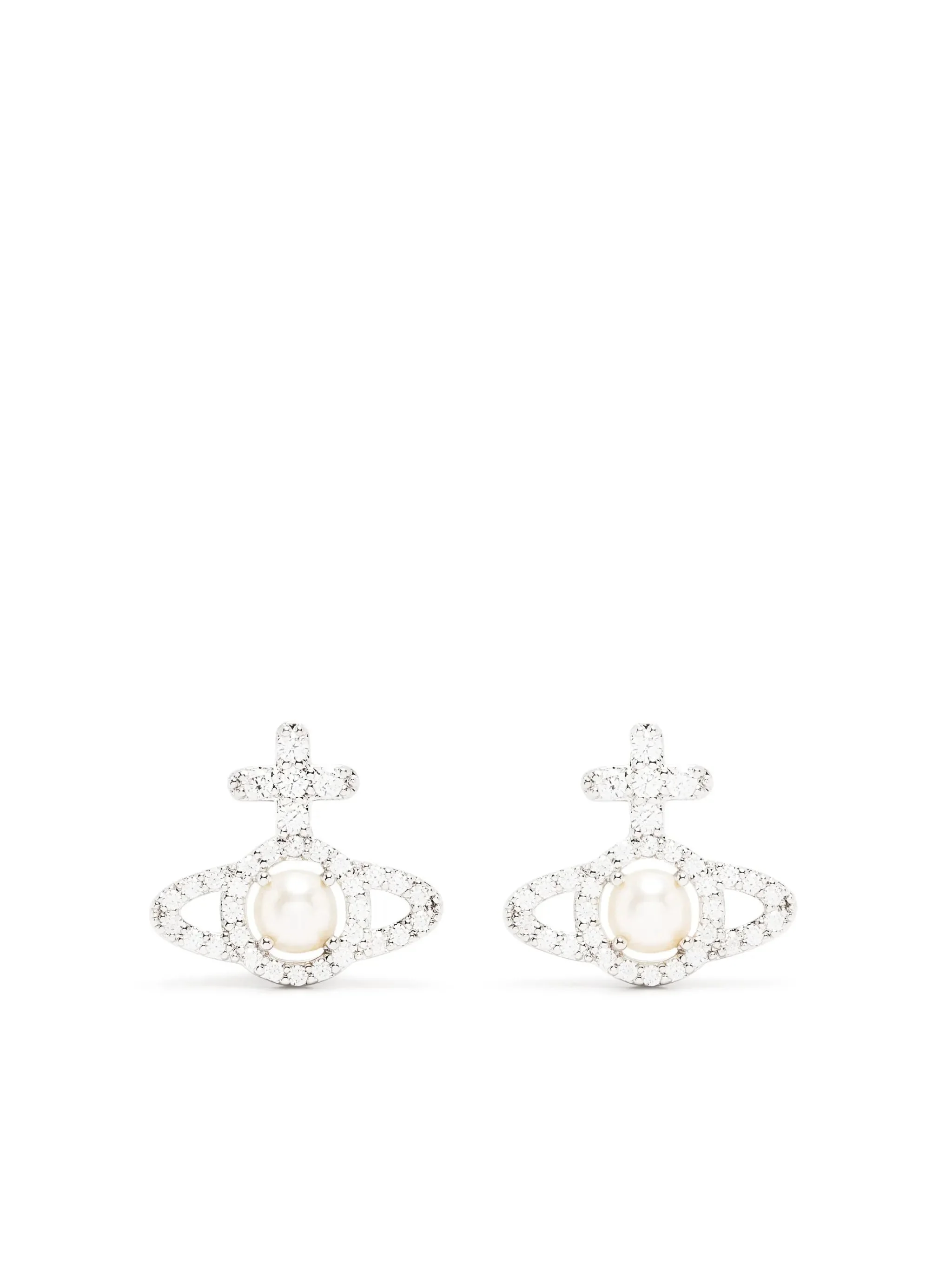 - silver - platinum-plated hardware - crystal embellishment - pearl detail - butterfly clasp fastening - These earrings come as a pair. Materials & Product Care Pearl 100%, Platinum Plated Brass 100% Size & Fit - The model is 1.78 m wearing size OS.