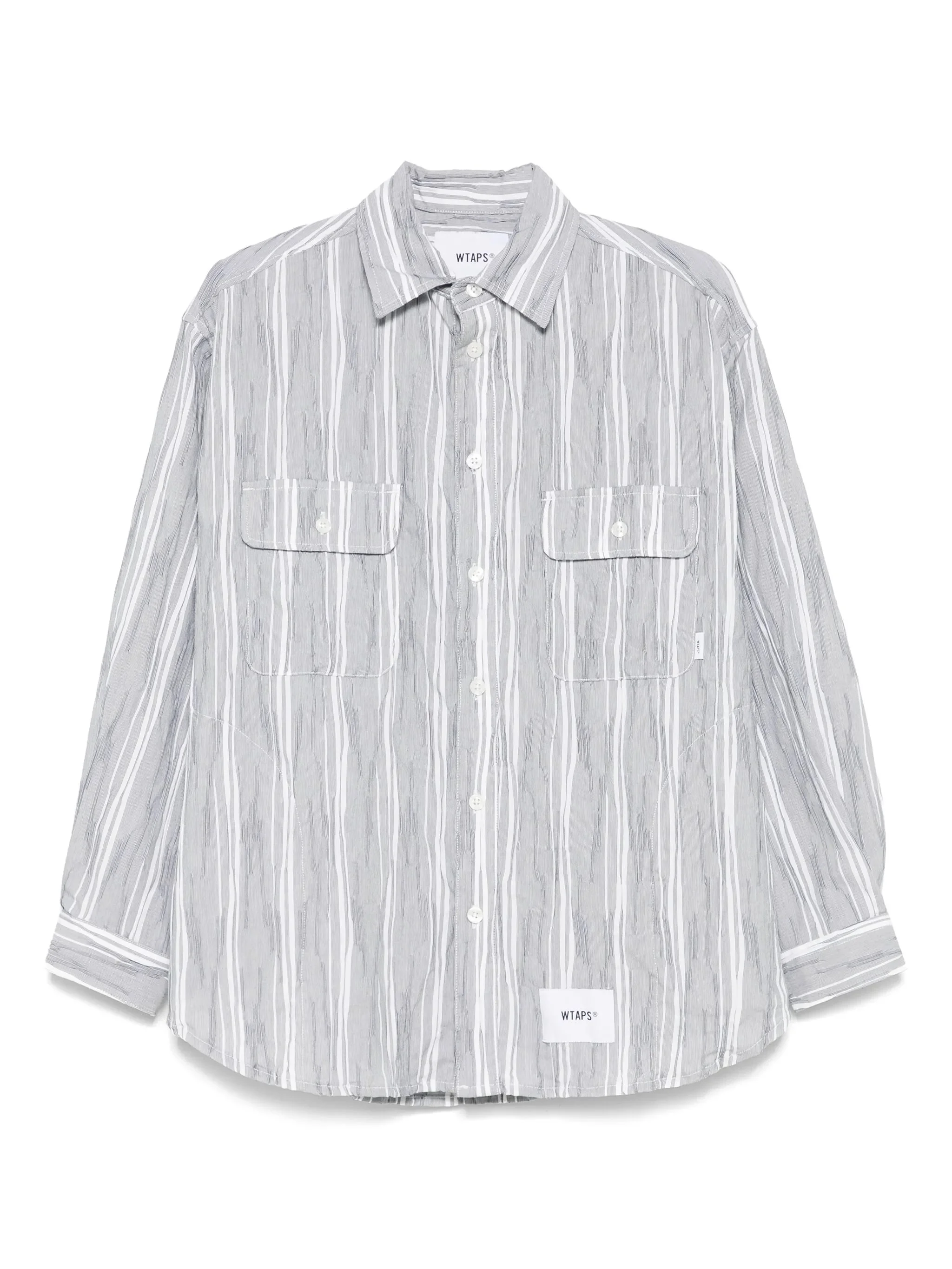 - light blue - front button fastening - two chest flap pockets - buttoned cuffs - logo patch to the front Materials & Product Care Cotton 67%, Polyester 32%, Polyurethane 1% Size & Fit - Designed for a relaxed fit, this piece allows for comfort and movement when worn - Made from a midweight non-stretch fabric - The model is 1.85 m wearing size 1.