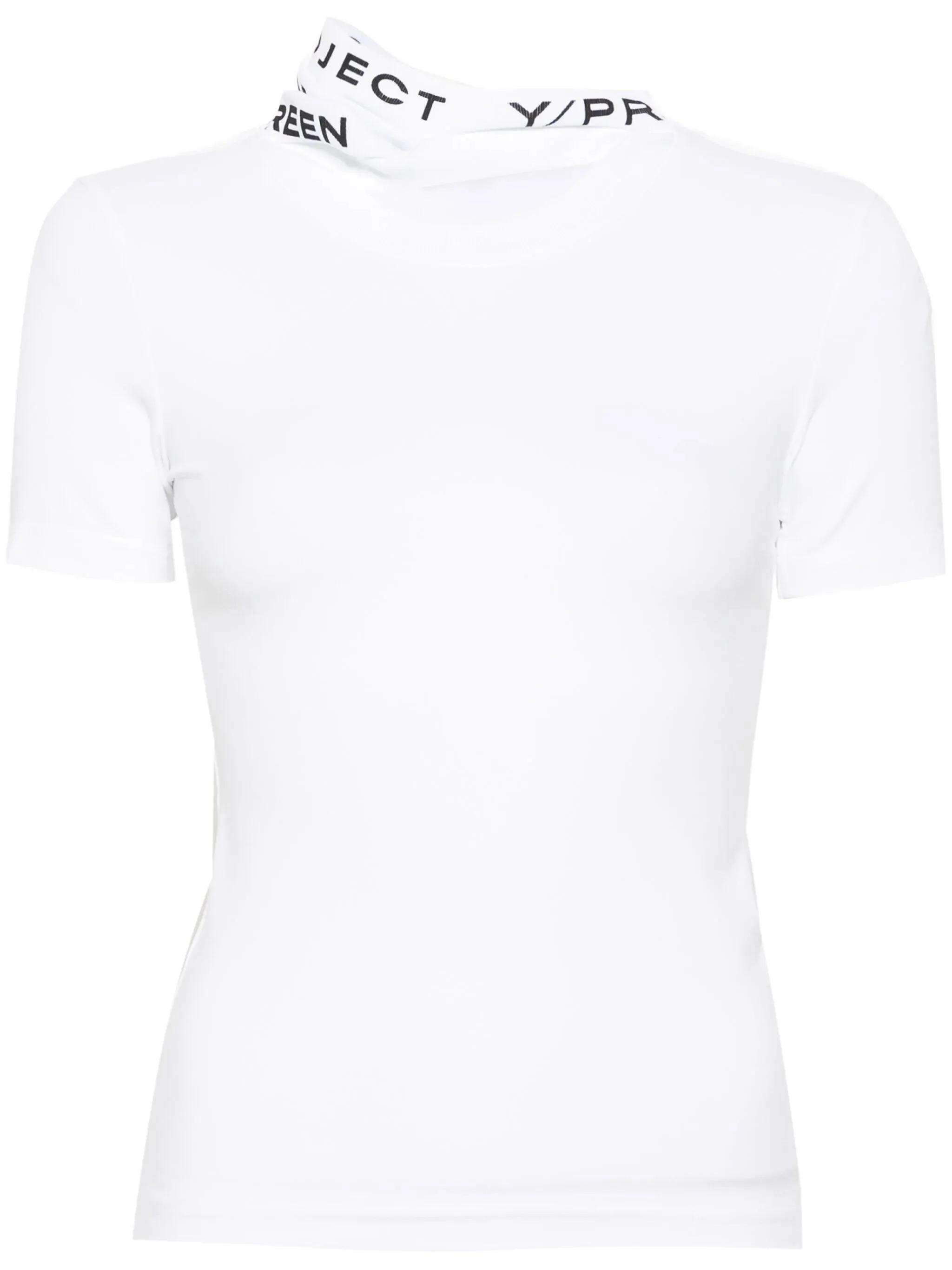 - optical white - stretch organic cotton - soft jersey - logo print embellishment to the collar - triple collar - short sleeves - straight hem - unlined Materials & Product Care Organic Cotton 86%, Spandex/Elastane 14% Size & Fit - The model is 1.80 m wearing size XS.