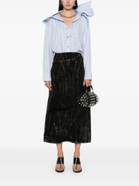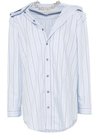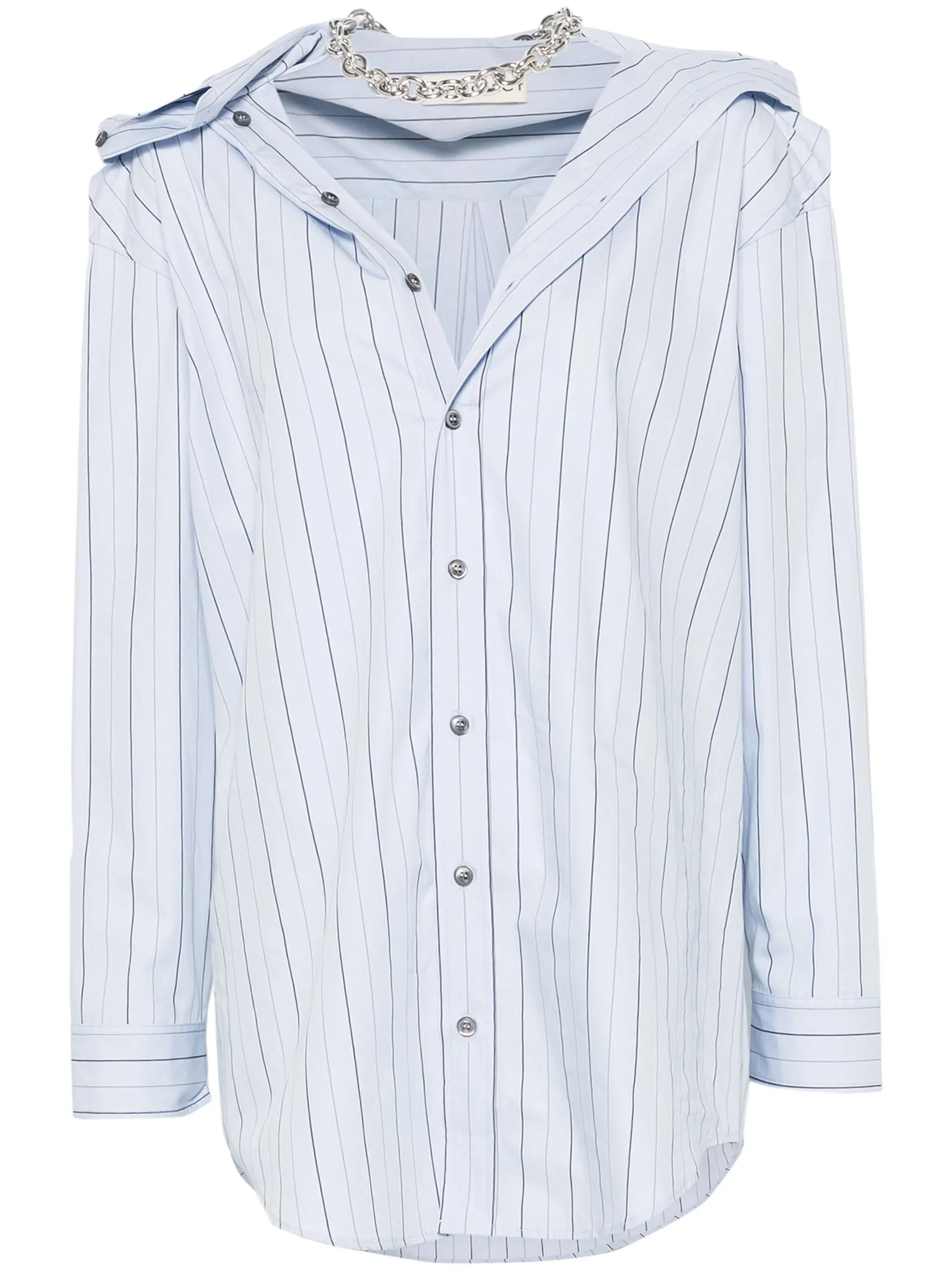 - light blue/black - organic cotton - poplin texture - front button fastening - vertical stripe pattern - draped detailing - chain-link detailing - long sleeves - buttoned cuffs - curved hem Materials & Product Care Organic Cotton 100% Size & Fit - Designed to be unstructured, offering a loose fit throughout - Made from a midweight non-stretch fabric - The model is 1.78 m wearing size 36.