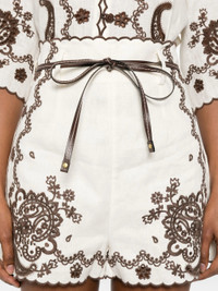 - light beige - concealed rear zip fastening - belt loops - detachable waist belt - scallop edge Materials & Product Care Cotton 100%, Linen/Flax 100% Size & Fit - Adjust this piece’s waistband to your preference using the drawstring - Designed for a slim fit that sits just away from the body offering a close yet comfortable fit - Made from a midweight non-stretch fabric - The model is 1.80 m wearing size 1.