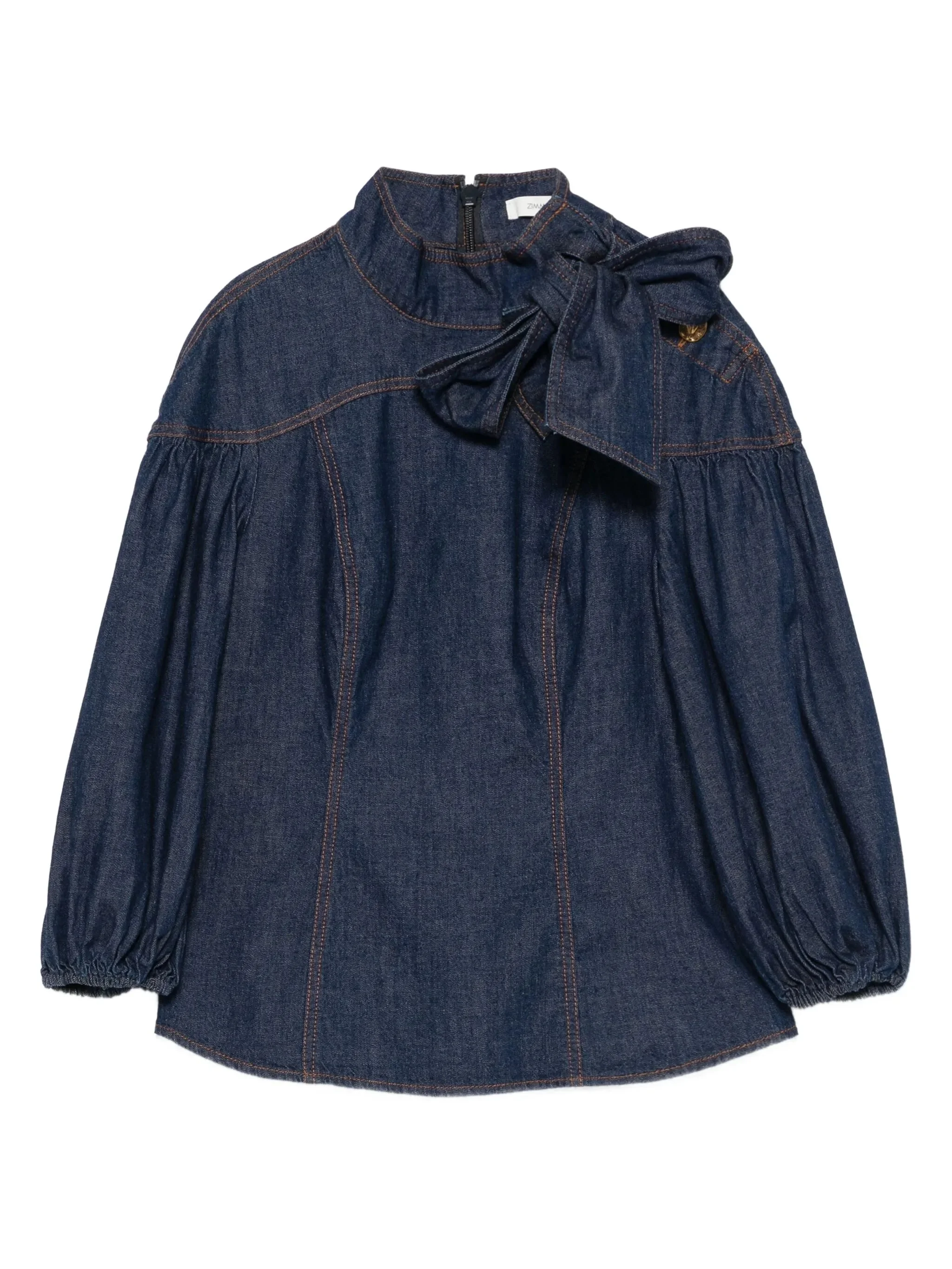 - indigo blue - puff sleeves - bow detail - mock neck - rear zip fastening Materials & Product Care Cotton 100% Size & Fit - The model is 1.80 m wearing size 1.