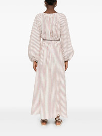 Cascadian Oversized Belted Striped Linen Maxi Dress