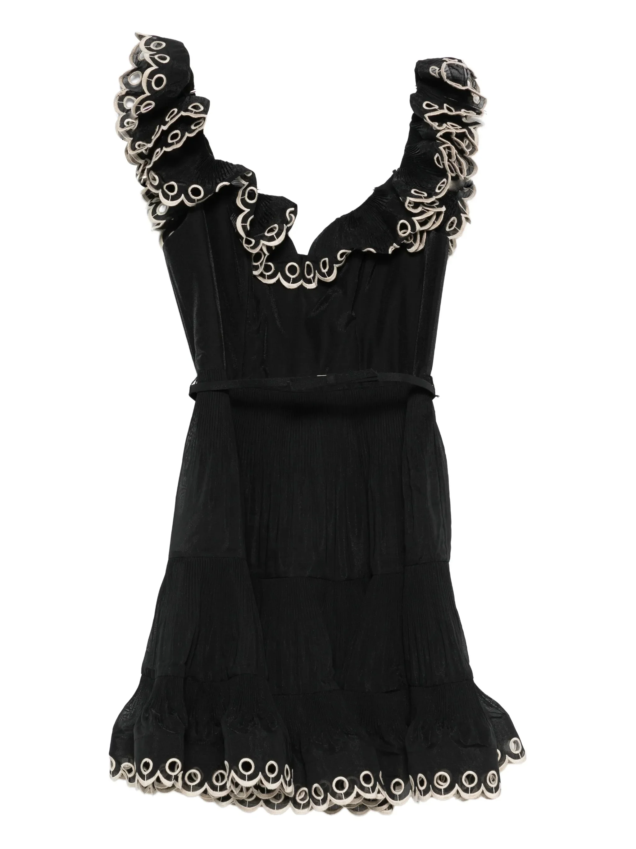 - black - frilled trim - embroidered detail - belt detail - mini length Materials & Product Care Lining: Cotton 100% Outer: Polyester 100% Size & Fit - The model is 1.80 m wearing size 1.