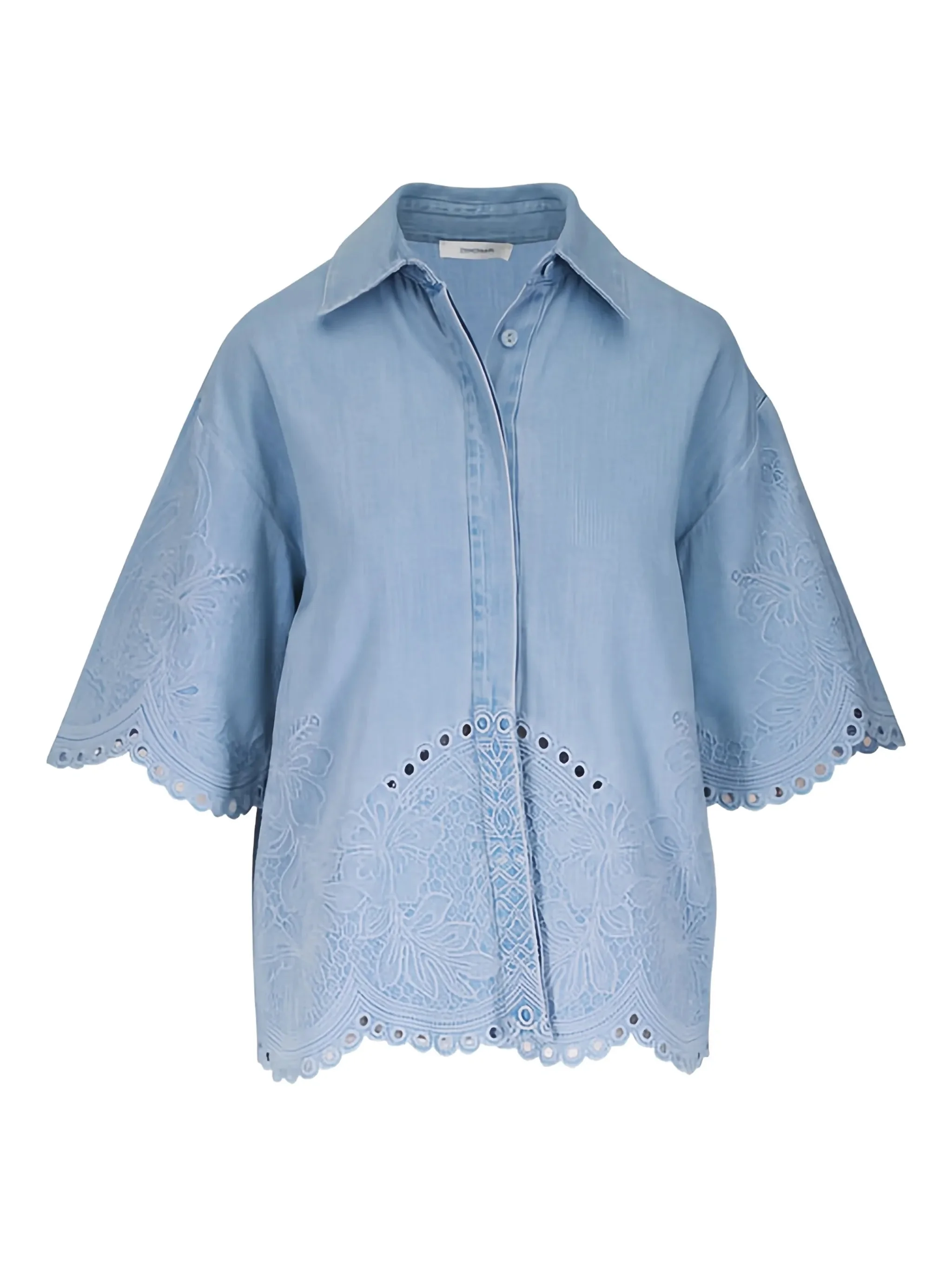 - ice blue - floral embroidery - scalloped edge - button fastening - short sleeves - point collar Materials & Product Care Cotton 100%, Polyester 100%