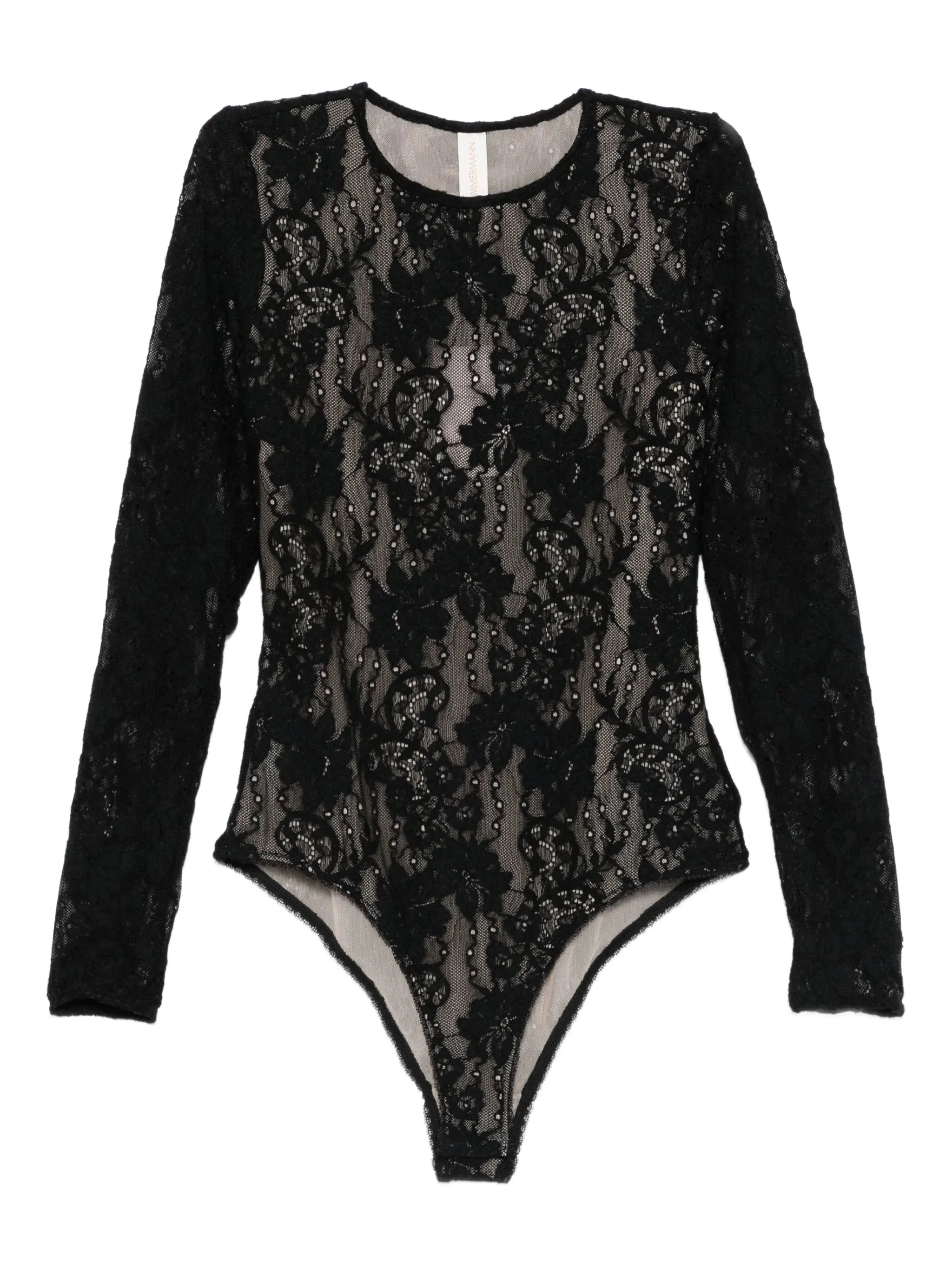- black - floral lace - long sleeves - round neck - stud detailing - Just a reminder that this piece must be tried on over your own garments. Materials & Product Care Lining: Elastane 19%, Polyester 81% Outer: Elastane 10%, Polyamide 90% Size & Fit - The model is 1.77 m wearing size 1.