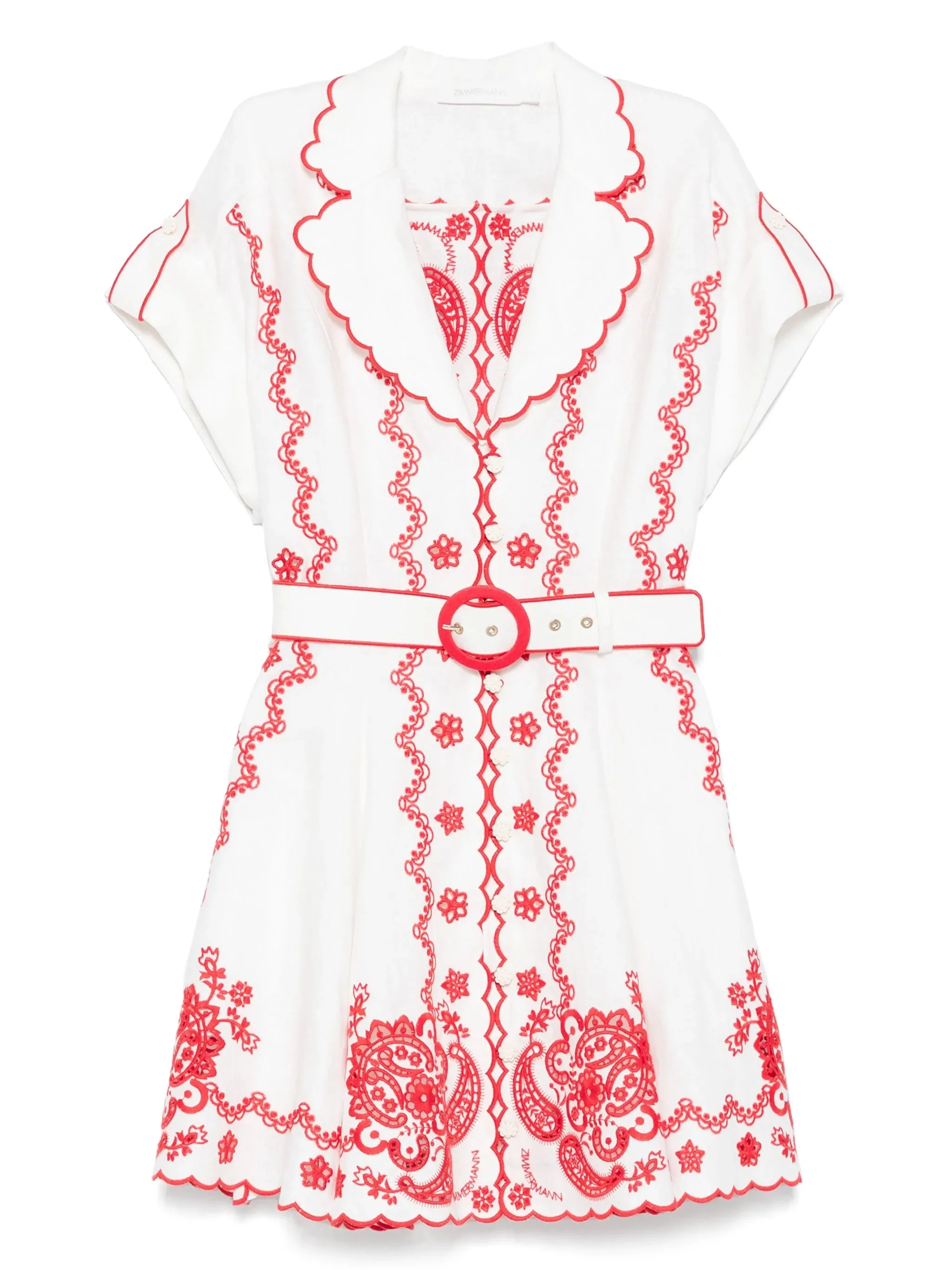 - white - front button fastening - belted waist - scallop edge - buttoned cuffs Materials & Product Care Elastane 14%, Recycled Polyester 86% Size & Fit - Designed to be unstructured, offering a loose fit throughout - Made from a midweight fabric - The internal slip sits just away from the body, offering a close yet comfortable fit - The model is 1.78 m wearing size 1.