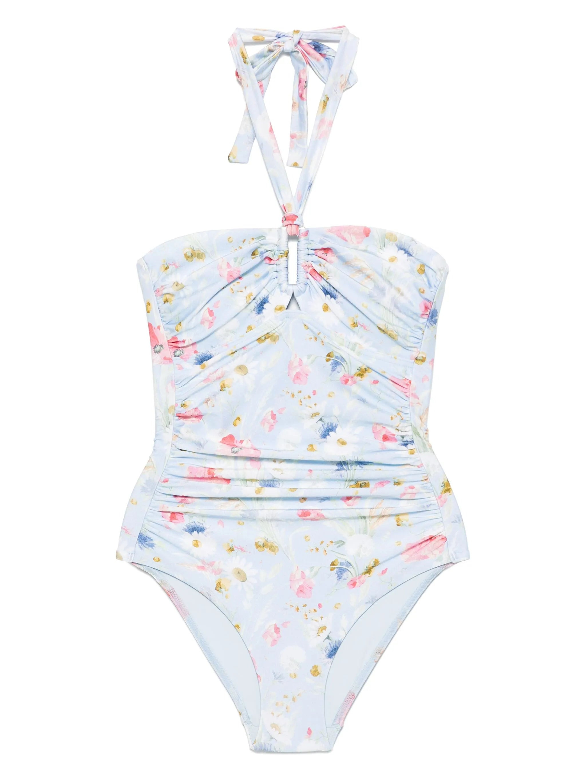 - light blue - halterneck tie fastening - floral print - partial lining - Be mindful to try on swimwear over your own garments. Materials & Product Care Lining: Elastane 8%, Recycled Polyamide 92% Outer: Elastane 20%, Polyamide 80%