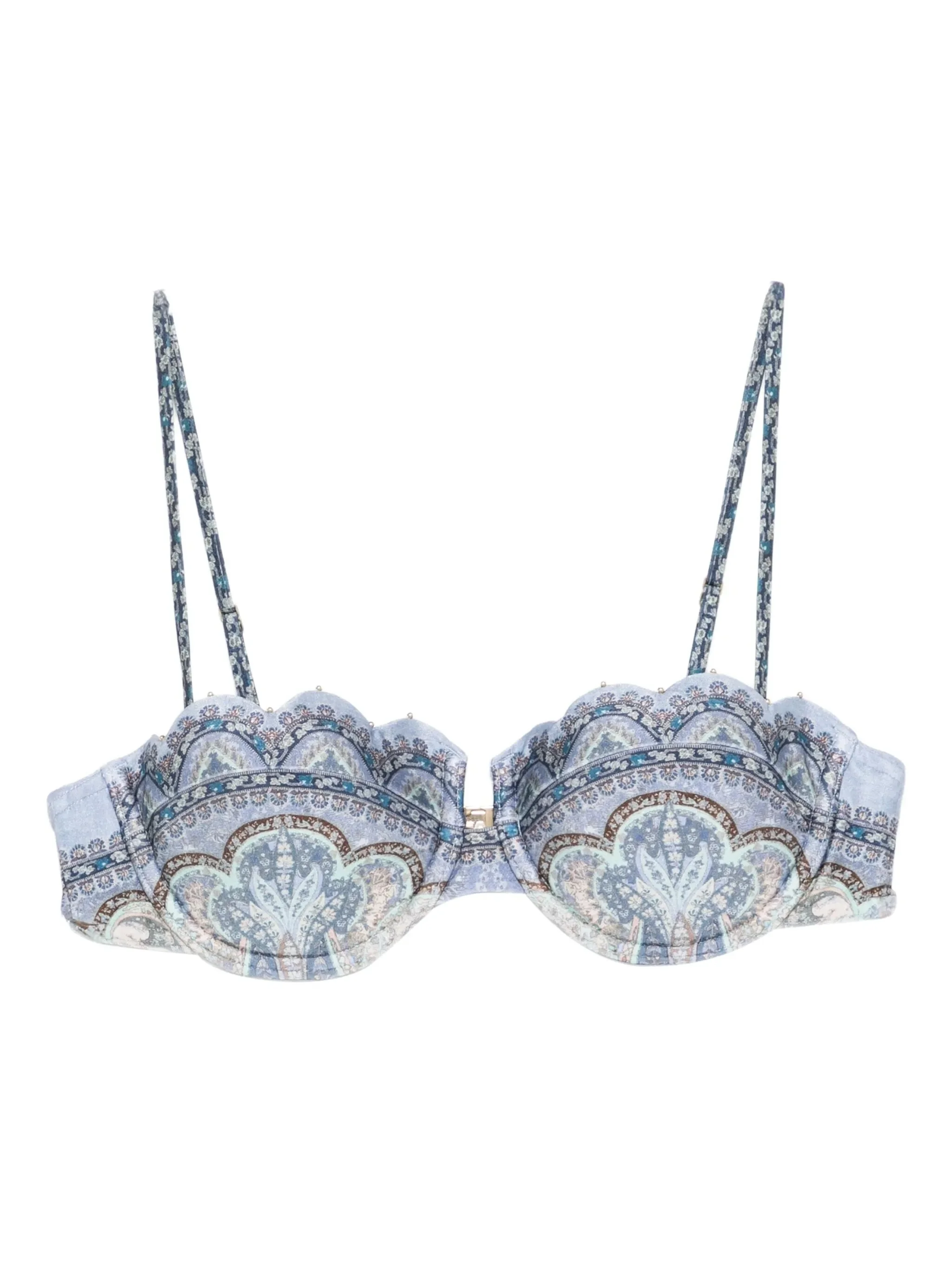 - blue - tapestry print - scalloped trim - adjustable straps - clasp fastening - Be mindful to try on swimwear over your own garments. Materials & Product Care Lining: Elastane 8%, Recycled Nylon 92% Outer: Elastane 20%, Polyamide 80%