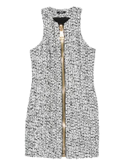 zip-front tweed mini dress