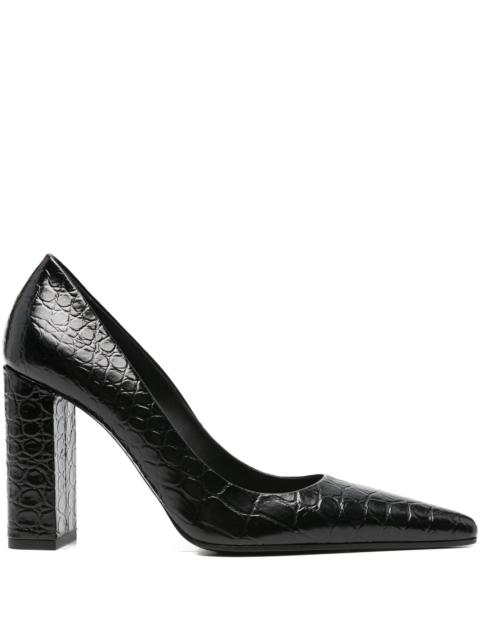 90mm crocodile-embossed pointed pumps