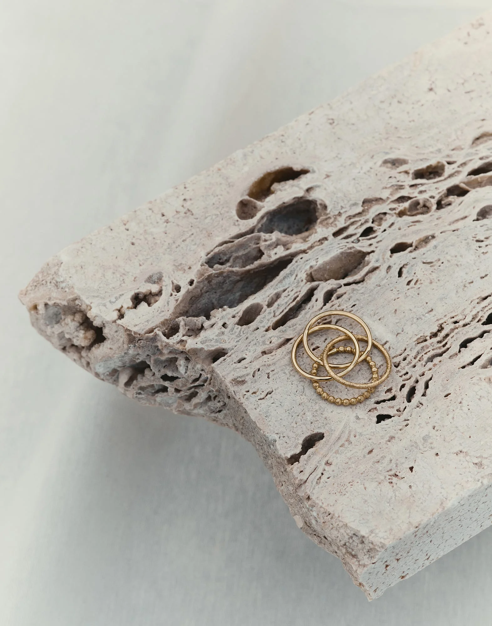 The essential lines of the 18K yellow Gold Aurum collection enhance the preciousness of materials and craftsmanship, distinctive elements of Brunello Cucinelli style. This jewelry is made up of three thin rings that are joined together, and a fourth ring that brings to mind the texture of a row of monili, the iconic element of the Women’s collections. MATERIALS The 18K yellow Gold jewelry was designed and handcrafted in Umbria, the Italian region that is home to the hamlet of Solomeo. DETAILS The jewel is entirely made from 18 kt yellow gold Designed and Made in Italy Size XS corresponds to Italian size no. 10, i.e. American size no. 5.25 Size S corresponds to Italian size no. 13, i.e. American size no. 6,25 Size M corresponds to Italian size no. 15, i.e. American size no. 7 Size L corresponds to Italian size no. 18, i.e. American size no. 8.25 If you have any doubt or require further information about ring sizes, please do not hesitate to contact our customer service or a Brunello Cucinelli boutique Jewels come with a special packaging dedicated to the Aurum line 18K YELLOW GOLD