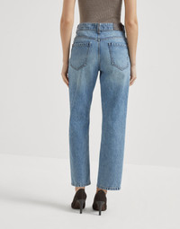 Authentic denim retro five-pocket trousers with monili