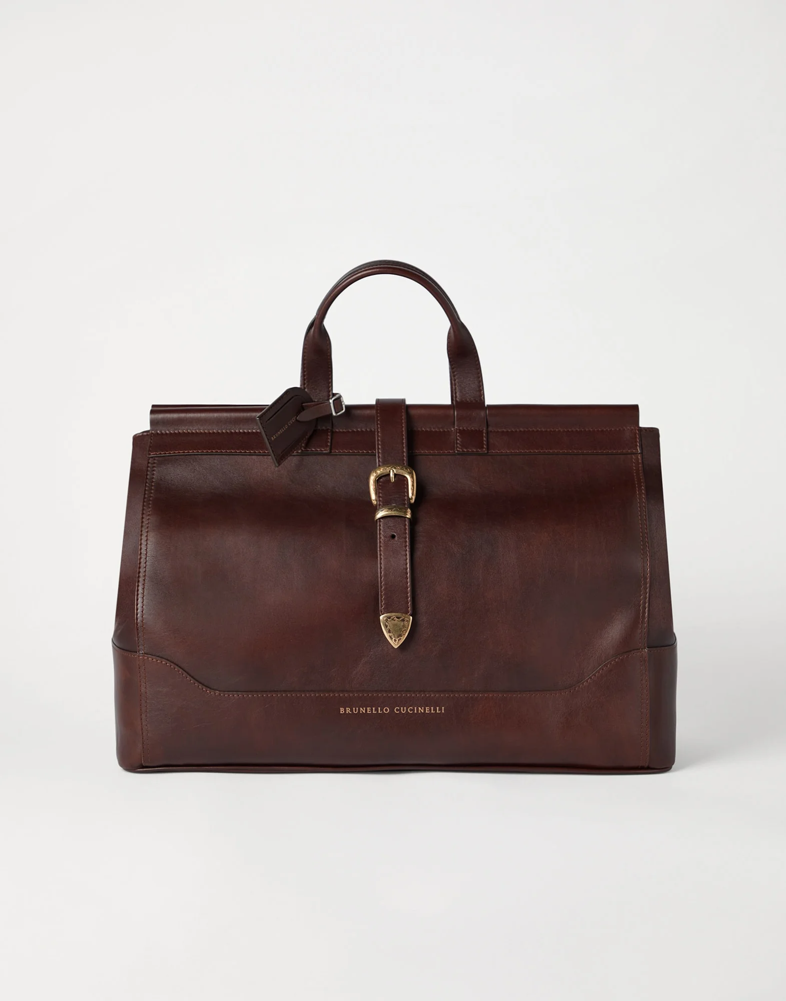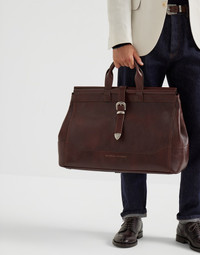 This new calfskin bag draws inspiration from classic briefcases. Spacious and elegant, the accessory features an adjustable inlaid buckle closure with a retro feel and a large interior compartment. The external and internal pockets allow for optimal organization of the space. MATERIALS Lightweight and soft, the calfskin leather showcase a slight natural grain that enhances the season’s colors. The finish and the special coloring give the leather a mild light and dark effect with a vintage feel with shading and unique details in each style. DETAILS Adjustable strap closure Double handle Outside zipper pocket Water-resistant fabric lining Internal pocket with zip closure Internal pocket with button closure All metal parts are Nickel-free Accessory is approx. 54 cm (21.26") long, 37 cm (14.57") high, and 23 cm (9.06") wide REAL LEATHER
