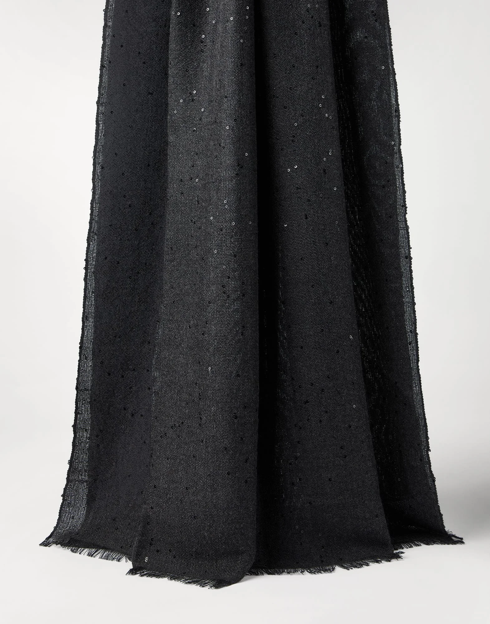 A sophisticated and shimmering look define this new cashmere and silk Diamond yarn scarf. The surface’s shiny reflections provide the accessory with a sparkling note. The fringe edges complete the style of the scarf with a bold touch. MATERIALS Cashmere is combined with silk to obtain an ultra-soft and weightless-effect yarn. DETAILS Scarf measures approx. 80 cm (31.50") x 200 cm (78.74") 70% CASHMERE, 30% SILK