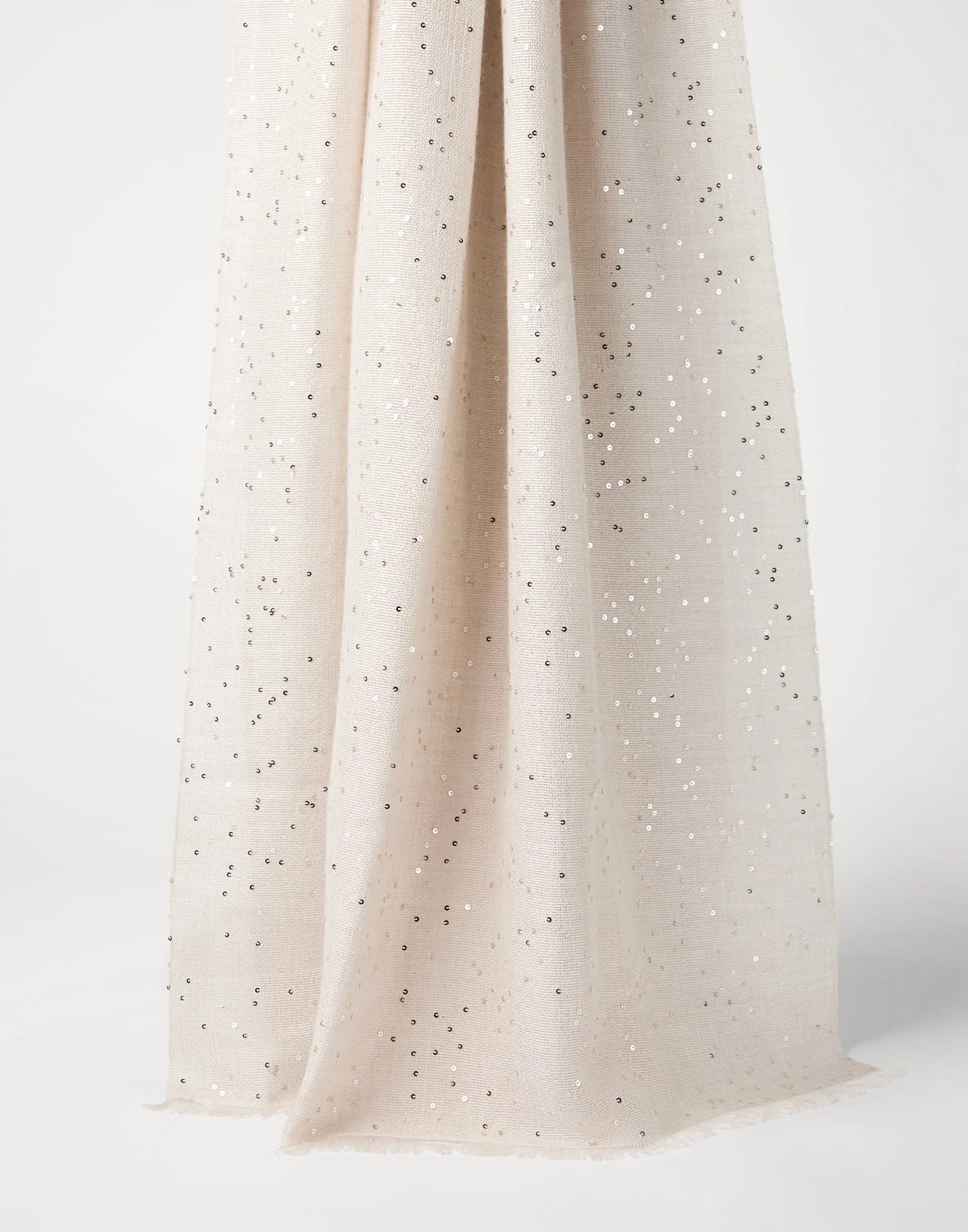 A sophisticated and shimmering look define this new cashmere and silk Diamond yarn scarf. The surface’s shiny reflections provide the accessory with a sparkling note. The fringe edges complete the style of the scarf with a bold touch. MATERIALS Cashmere is combined with silk to obtain an ultra-soft and weightless-effect yarn. DETAILS Scarf measures approx. 80 cm (31.50") x 200 cm (78.74") 70% CASHMERE, 30% SILK