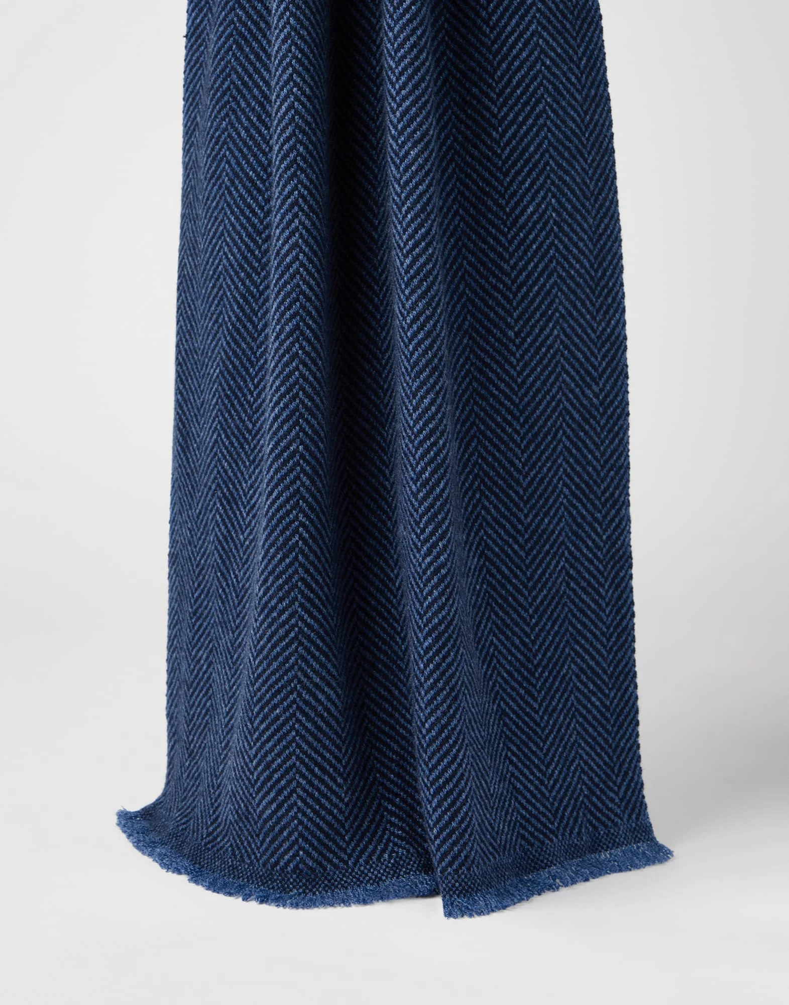 The excellence of Brunello Cucinelli cashmere enhances the essential style of this scarf, providing ideal comfort and protection during the colder months. The distinct chevron weave defines the accessory's sartorial inspiration, completed with fringed edges. MATERIALS The accessory is crafted in premium cashmere to provide a special soft and cozy sensation when worn. DETAILS Plain stitch Scarf measures approx. 45 cm (17,72") x 140 cm (55,12") 100% CASHMERE