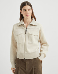 Cashmere double knit enriches the casual style of this new cardigan thanks to the precious qualities of the natural fiber. The style uses artisanal craftsmanship that combines two very thin layers of knitting, making wearing comfortable and cozy. The high neck and pockets on the front add functional, sporty elements, while an elegant embroidery of fine rows of shiny monili enriches the zipper pull with a feminine sparkle in true Brunello Cucinelli style. MATERIALS Manufacturing of the refined pure cashmere combines two layers of soft knit to enhance the precious qualities of the natural fiber. Ultra-soft and warm, the garment maintains a balanced weight to offer the right amount of protection. DETAILS Two-way zip closure High collar Drop shoulder Wide sleeve Two patch chest pockets with flap Special workmanship Nickel-free monili decoration 96% CASHMERE, 3% NYLON, 1% ELASTANE
