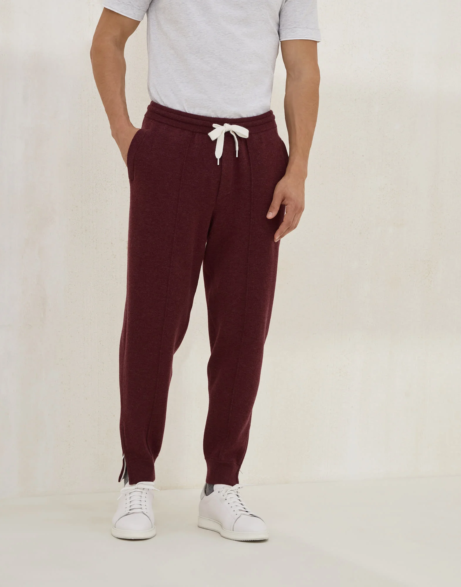 Cashmere double knit trousers with crête detail and elasticated zipper cuffs
