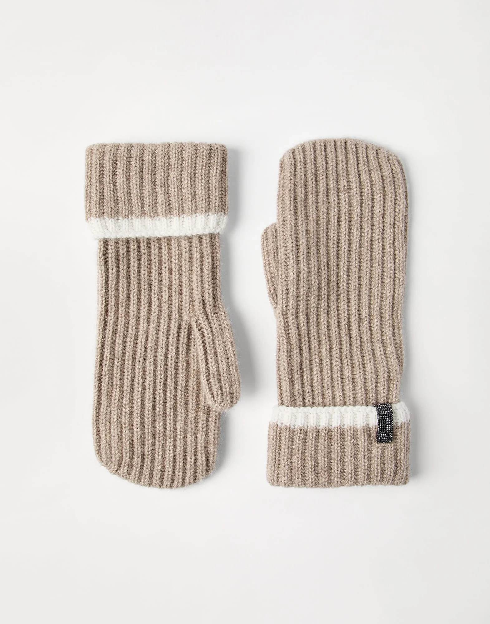 Cashmere English rib knit mittens with monili