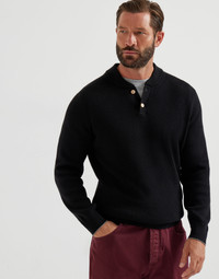 The classic feel of knitwear is paired with the excellence of Brunello Cucinelli yarns and an essential silhouette in this Henley collar sweater, completed with a two-button opening. The rib knitting brings to life the soft, cozy texture of the pure cashmere garment, which features a regular, comfortable fit. MATERIALS The noble cashmere fiber is characterized by an extreme fineness and also for its precious insulating qualities which guarantee warmth, providing coverage and lightness when worn. DETAILS Henley collar in rib knit Button opening Regular shoulder Rib knit cuffs and bottom band English rib 100% CASHMERE