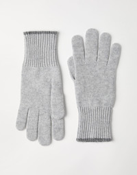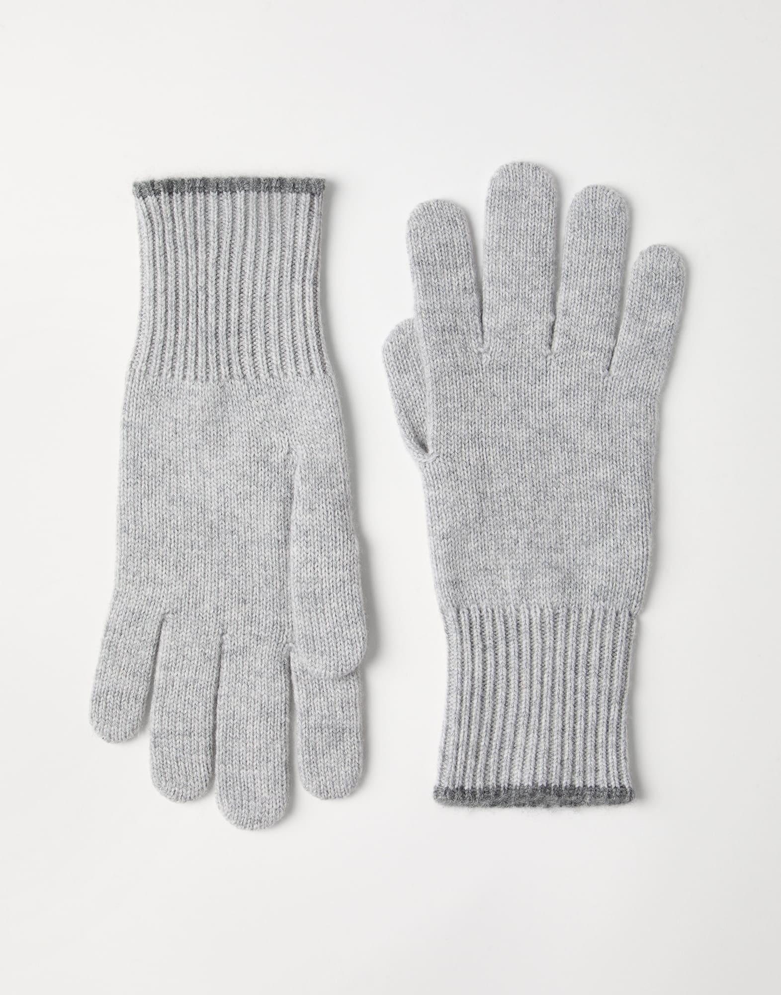 The quality of Brunello Cucinelli materials enriches the pure cashmere gloves, a warm and comfortable accessory to guarantee protection during cold winter days. Contrasting trim along the edges add a touch of color. MATERIALS The noble cashmere fiber is characterized by an extreme fineness and also for its precious insulating qualities which guarantee warmth, providing coverage and lightness when worn. DETAILS Rib knit wrist Unlined 100% CASHMERE