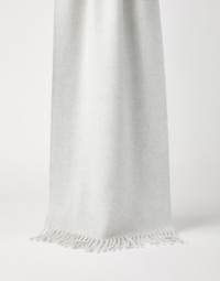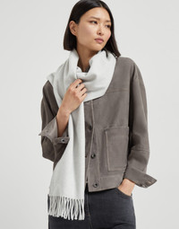 The excellence of Brunello Cucinelli materials elevates the style of this new cashmere scarf. This elegant and versatile accessory features an extremely soft and ethereal texture that highlights the seasonal nuances and lends understated elegance to the design. The fringe on the short side complements the design. MATERIALS The beauty of the cashmere fiber enhances the soft scarf, ideal for periods of transition. DETAILS Scarf measures approx. 39 cm x 208 cm Short side with fringe 100% CASHMERE