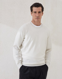 A timeless classic, this pure cashmere sweater represents an icon of the Brunello Cucinelli collections. The natural cashmere fiber’s superior quality enhances its comfortable fit, which is both lightweight and cozy. The contrast color edges of the cuffs and the inside of the crew-neck complete the style of this garment with refined details. MATERIALS The noble cashmere fiber is characterized by an extreme fineness and also for its precious insulating qualities which guarantee warmth, providing coverage and lightness when worn. DETAILS Crew-neck in rib knit Rib knit cuffs and bottom band Plain stitch 100% CASHMERE