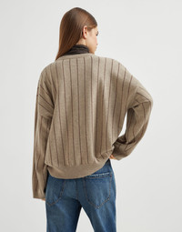 Cashmere sweater with dazzling chalk stripe embroidery