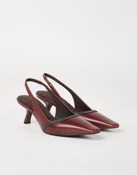 Essential elegance and precious details define the contemporary style of these slingback city heels. The classic leather’s soft texture is paired with the asymmetrical heel, which highlight’s the footwear’s sophisticated allure. Embroidered in shiny monili, the thin band on the front leaves a sparkling trail in true Brunello Cucinelli style. The rear elastic strap provides the fit with added comfort. MATERIALS The classic leather features a fine natural grain that defines the texture with a smooth, compact and semi-polished effect. The suede lining and the non-slip TPU rubber inserts on the heel and toe provide added comfort. DETAILS Rear elastic band Suede lining Leather sole Non-slip TPU rubber at heel and toe Nickel-free monili decoration 6.5 cm (2.56") heel REAL LEATHER