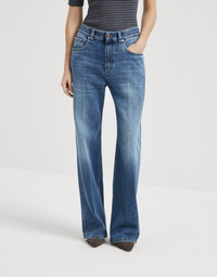Casual proportions and precious details come together in perfect harmony in these contemporary loose trousers. The straight lines, enhanced by the ironed crease in the front, streamline the silhouette, while the regular fit in the hips falls comfortably down the leg. The shiny monili embroidery adds a delicate touch of feminine sparkle in true Brunello Cucinelli style. MATERIALS Made in Italy, 10 OZ comfort cotton denim is characterized by its traditional indigo color with a pleasant stretch effect created by the presence of an elastic fiber. DETAILS Zip closure with button Front pockets with watch pocket Back patch pockets Nickel-free monili decoration 99% COTTON, 1% ELASTANE
