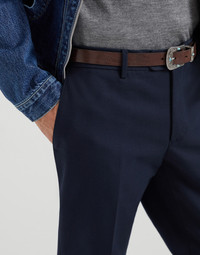 The lightness of gabardine enhances the casual, contemporary feel of these Italian fit trousers. Made from refined cotton and virgin wool yarns, the fabric is defined by its characteristic compact weave. The classic Italian fit is close-fitting and offers slightly softer lines than more traditional fits. MATERIALS The casual, versatile texture of gaberdine is made with cotton and virgin wool threads for a lightweight, compact effect. The knee-length lining provides added comfort. DETAILS Zip closure with button and inner-buttons Slanted front pockets with watch pocket Back welt pocket with button Lining to knee Plain hem Italian fit: the fit is fitted and balanced, with a regular seat and waist 63% COTTON, 37% VIRGIN WOOL