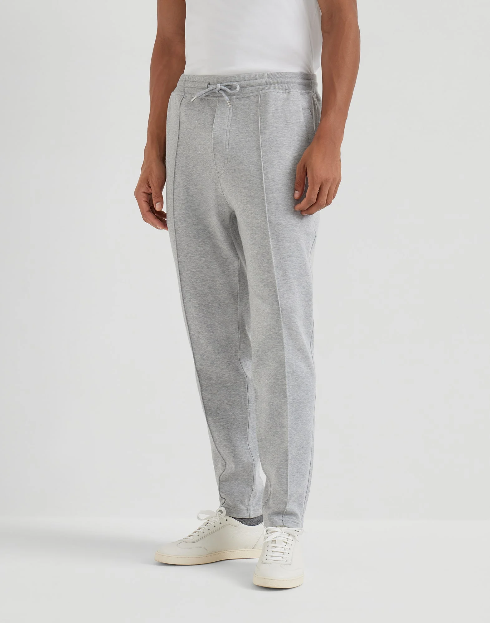 Cotton, cashmere and silk French terry double cloth trousers with Crête detail