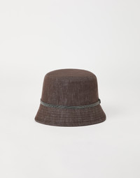 The sporty lines of this Bucket hat are paired with Brunello Cucinelli’s refined materials and iconic details. The casual fabric is combined with a precious shiny monili band that runs around the circumference of the accessory, for a feminine sparkling note. MATERIALS Characterized by a look reminiscent of classic denim, the pure cotton twill is a lightweight, comfortable fabric that is suitable year-round. DETAILS Lined Nickel-free monili decoration 100% COTTON