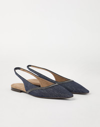A casual look and feminine elegance come together in these new flats in cotton denim-like twill. With a metropolitan feel, the fabric pairs perfectly with the footwear’s sophisticated silhouette, to create a timeless, casual style. Fine rows of shiny monili embroidery on the front leave a precious sparkling trail for an iconic touch in true Brunello Cucinelli style. MATERIALS Characterized by a look reminiscent of classic denim materials, the pure cotton twill is a lightweight, comfortable fabric that is well suited for the world of footwear. DETAILS Rear elastic band Suede lining Leather sole Non-slip TPU rubber at heel and toe Nickel-free monili decoration The heel height measures 1 cm (0.39") 100% COTTON